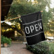 Open sign flag. Simple white on black vertical flag with a two thin lines.