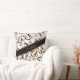 This cute volleyball team colors throw pillow for girls features a pattern of varied size stylized black, orange and white volleyballs turned every which way overlying a volleyball net detail graphic - the volleyballs' black and orange panels are blended with an artsy, girly floral pattern - personalize her name in a sophisticated handwritten font on a bold, angled, full width black color strip - background and name strip colors are customizable - by katz_d_zynes