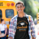 This modern orange and black custom senior graduate t-shirt features your high school or college name for the class of 2025. Customize with your graduating year under the chic handwritten script and white grad cap for great personalized graduation tees.