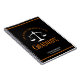 This modern black and orange custom law school graduation notebook gift features classy typography for a class of 2024 graduate. Customize with your graduating year under the white scales of justice for this great personalized lawyer or attorney present of congratulations.