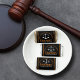 This modern black and orange custom law school graduation party favor features classy typography for a class of 2024 graduate. Customize with your graduating year under the scales of justice for a great personalized lawyer or attorney Hershey's Miniature.