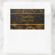 Black & Orange Retro Floral Pattern-Custom Text Rectangular Sticker