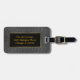Stylish luggage tag, with graphics of a black colored ostrich skin look. An elegant gold tone framed text area, on the front has golden yellow custom text ready to personalize. Great way to tell your luggage apart from the rest.