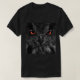 Black owl face with red eyes on men's dark tshirt