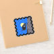 This vinyl sticker has a black owl with blue eyes sitting in a tree against a dark blue night sky with a yellow moon and stars in a wavy black border.