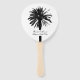 Black and white palm tree beach wedding ceremony program order Hand Fan . Add your own personalized wedding ceremony itinerary timeline schedule. Classy script typography template for couple getting married and guests. Personalize with name and order. Great for summer or destination wedding in exotic climate. Elegant palm tree silhouette design.