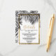 Elegant, chic, and modern tropical beach faux printed gold outline and black palm tree frond leaves on white with faux printed gold sequin typography, Wedding information details card. This classic and sophisticated design is perfect for the classy, stylish, and trendy graduate. Personalize with your own message on the front and a customized monogram initial on the back. All photo print design.