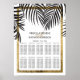 Elegant, chic, and modern tropical beach faux printed gold outline and black palm tree frond leaves on white with faux printed gold sequin typography, wedding seating place chart. This classic and sophisticated design is perfect for the trendy and stylish marrying couple. Personalize with your own message on the front as well as a customized monogram initial on the back. All photo print design.