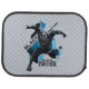 Black Panther crouches with arms outstreched in this high-tech graphic with tribal pattern edges that reads: Black Panther, King of Wakanda.