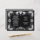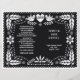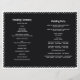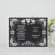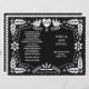 Black and white papel picado love birds wedding fiesta folded program. It displays two white lovebirds and a love heart with the word love and flowers, leaves and small dots on black background. This Mexican folk art style floral wedding template design is fully customizable.