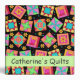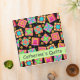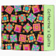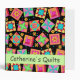 This quilt art notebook album personalized with your name can hold quilt photos, patterns, guild notes, recipes and mcuh more and is easy to customize. This trendy and colofrul quilt art is based on original art featuring favorite patchwork quilt blocks plus unique blocks in vibrant and dynamic colors of orange, red pink, yellow, turquoise, green and blue on a black background. A light green strip on the front and spine give an area for personalization. This binder has several uses, including for your guild notes, your quilt projects or a scrapbook album for your quilts. Fully customizable and personalizable with your name, guild name, subject or other text.