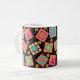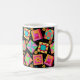 Quilt art based on original art features favorite patchwork quilt blocks plus unique blocks created by Phyllis Dobbs in vibrant and dynamic colors and tossed on black background. Show your love of quilting with these designs while drinking your favorite beverage in this mug. Fully customizable.