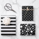 Three patterns in black and white: basic stripes, polka dots and random spots.