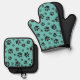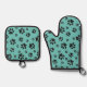 Black Paw Prints Design Oven Mitt and Pot Holder Set with customizable background color.