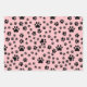Black Paw Prints on Lemonade Pink Wrapping Paper Sheets