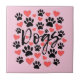 Black Paw Prints Red Hearts Typography Pink Ceramic Tile