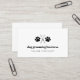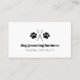 Dog grooming business card with with black paw prints and a pair of scissors.