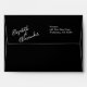 Expectations met; I liked that I had the opportunity to include our address on the back of the envelope. This color matched very well with my save the date. The color was the same as shown above. I had our address labeled on the back of the envelope and the font/printing met my expectations.