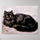A beautiful, shiny black Persian cat with bright yellow eyes lounges on a grey cushion in this vintage painting. Perfect for any Cat lover. From 'The Book of Cat' (1903), originally painted by Madame Henriette Ronner. Modified from original image from Biodiversity Heritage Library (http://www.biodiversitylibrary.org)