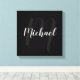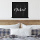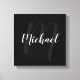 featuring name in white modern script font style and monogram in grey modern script font style as background on black background.