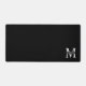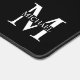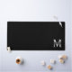 feature personalized white monogram in classic serif font style with box of name in the middle of monogram on black background.