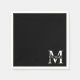 featuring personalized white monogram in classic serif font style with box of name in the middle of monogram on black background.