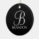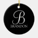 Black Personalized Script Monogram and Name Ceramic Ornament