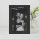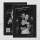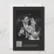 This save the date features a large black and white couple photo set against a soft black background with handwritten white script across the top. The front has your names, wedding date, and location, and the back includes a QR code that links guests straight to your wedding website. It's a clean, modern look — nothing fussy, just a great photo and the details people need. Perfect for couples who want their stationery to feel cool and current.