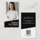 On the back, the black background keeps your contact details, QR code, and social media icons clear and easy to read. The mix of white typography and subtle black accents creates a sleek, modern feel that works well for any industry.