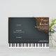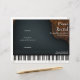 This is an elegant folded recital or concert program template featuring a stylized piano illustration on a background of clefs and music symbols.