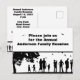 A graphic of people at an outdoor picnic is displayed on a black and white postcard invitation. Personalize the invitation with your own family name printed above the graphic and other reunion information on the reverse side.