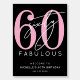Celebrate in style with this modern Fabulous Birthday Party Invitation, perfect for a “Sixty and Fabulous” theme or any milestone celebration. The design features a large pink “60” at the top with the word “sixty” written in elegant white script layered over it. Below, “fabulous” appears in bold white sans serif font for a clean, modern finish.