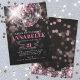 The sleek black backdrop pairs with a mix of white and pink serif fonts for an elegant, high-contrast look. Whether you're planning a classy cocktail night or a lively retro-inspired party, this versatile design suits any celebration. All colors, including the background and font shades, can be customized to fit your theme.