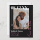 Black and pink modern save the date card in a retro color combination with your photo, your wedding date in a white font, and an elegant narrow arrow against a black background with pink as the accent color.