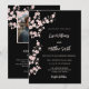 Black Pink Cherry Blossom Photo Wedding Invitation