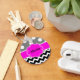 Black Pink Dots Chevron Personalized Keychain