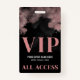 All Access Elegant Rose Gold VIP Badge. This design features a faux pink rose gold metallic top with a mix of pink and white fonts, paired with a black and white layout for a trendy and stylish vibe. Great for concerts, fashion shows, conferences, or celebrations like a sweet 16 or New Year’s Eve party. A bold serif font at the bottom is mixed with clean typography to show VIP, the event name, date, and “All Access Pass.” All text and colors are fully customizable.