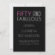 Fifty and Fabulous minimal pink and white modern 50th birthday invitation that you can personalize and send out for your fiftieth birthday party celebration. The words "Fifty and Fabulous" are set using popular font typography.