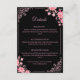 This enclosure card features soft pink flowers on a black background, designed to match the black and pink floral wedding invitation set. The floral details add a gentle and romantic feel while keeping the overall look clean and modern. It is perfect for sharing extra wedding information such as directions, schedule details, or accommodation notes. This card completes your black and pink floral wedding suite with a coordinated and stylish touch.