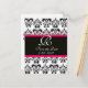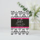 BLACK PINK FUCHSIA AND WHITE DAMASK MONOGRAM ANNOUNCEMENT POSTCARD
