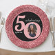 Black and pink rose gold glitter happy birthday paper plate for a 50 year old. Sparkly glam design great for women. Customize the age to suit your occasion and add a personal photograph of the recipient. Great for a 50th anniversary or birthday party decoration for a fiftieth birthday bash.