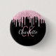 A black background decorated with pink faux glitter drips, paint dripping look. Personalize and add a name, your monogram initials. The name is written with a hand lettered style script. Perfect as party favors or name tags for birthday parties, bridal showers and bachelorette parties.
