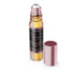 A label for perfume roller bottles featuring a black and faux pink glitter design.