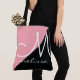 A simple and stylish monogrammed half-black and half-pink tote bag