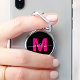 Personalized Monogram Hot Pink Black Initial Ring Stand Phone Grip. Add a fun and girly touch to your phone with this personalized ring stand, perfect for anyone from teenagers to adults. Featuring a bold magenta hot pink initial on a sleek black background, paired with a stylish white script name, this design brings a playful and modern vibe. Perfect for providing a secure grip or acting as a stand for hands-free viewing, this accessory is as practical as it is trendy. Ideal for gifting on birthdays, holidays, or as a cute stocking stuffer at Christmas, this monogram ring stand combines style and function, making it a must-have for anyone who loves personalized accessories!