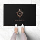 Black Pink Monogram Elegant Rose Gold Crest Name Doormat