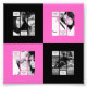This 4 x photo collage template with 8 text fields has a striking black and pink theme. It can be used as 'is' with this quality photo paper or it can be transferred to any other gift type available via Zazzle from this store. See below for your options. You can transfer this design to greeting cards (horizontal), invitations (create a save the date), mugs, or any other gift type that suits this design. Create a unique birthday or Christmas gift, retirement, graduation, wedding, or anniversary, the options are limitless. The photos here have a filter so your photos will transform to black and white. If you want to remove the photo filter use the customize/personalize options. Other background types are available. Gift your parents, grandparents, brother or sister, husband, wife, son or daughter with a unique photo gift. This is a unique modern design perfect for the upbeat couple who likes to stand out and their gifts too!