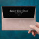 Simple, modern, elegant, chic, glitter rose gold and black envelope, with return address.