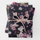 Black Pink Sakura Flowers, Pattern Design, Wrapping Paper Sheets