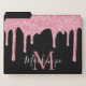 Black Pink Sparkle Glitter Drips Monogram File Folder